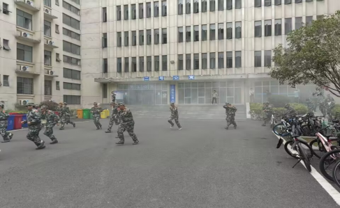 吴参谋强调,发生火灾后如何自救逃生是最基本的一项技能,以及如何正确使用灭火器,同学们要认真对待,通过实战认真学习。接着重点讲解了火灾发生后逃生的要领,“低头、捂鼻、扶墙”,不要乘坐电梯,快速撤离火灾现场。随后全体学生在教官的带领下回到各自寝室,随着警报拉响,6000余学生分别从1、2、5、6、7、8号公寓内迅速撤离在操场集合,从疏散效果看,此次演练用时短,安排有序,同学们撤离迅速,没有发生一起意外。